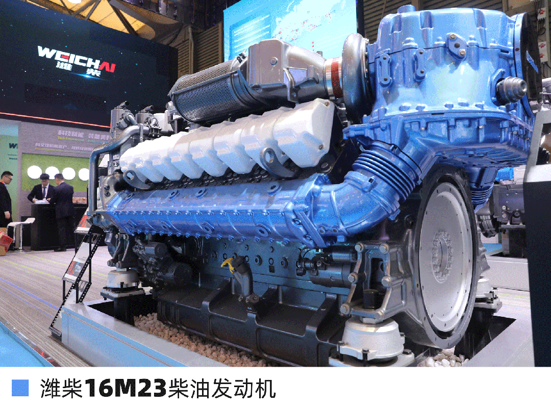 展会现场,潍柴M/WH系列大缸径动力的代表——12M33应急机组及16M23、16WH17柴油发动机吸引众多嘉宾关注。尤其全新一代16WH17柴油发动机,最大功率3200Ps,产品历经严苛试验,高效可靠;高压共轨燃油喷射技术,控制更加精准,为工程船、